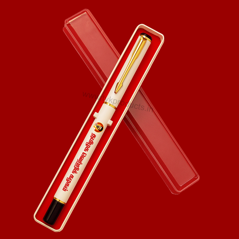 Material : White Metal Roller Ball Pen with Gold Plated.