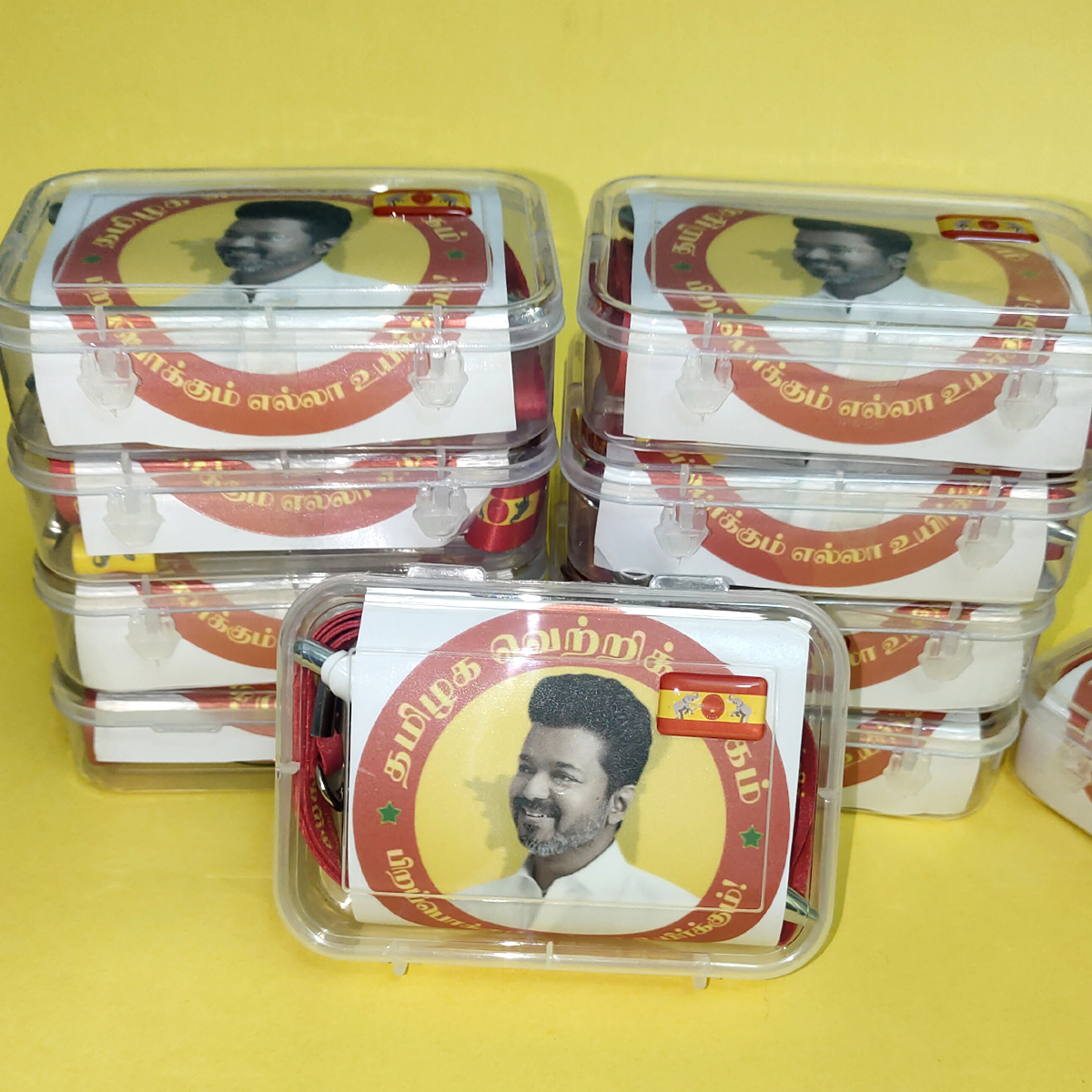 In All Product Printed Tvk Party Name with Vijay Photo.