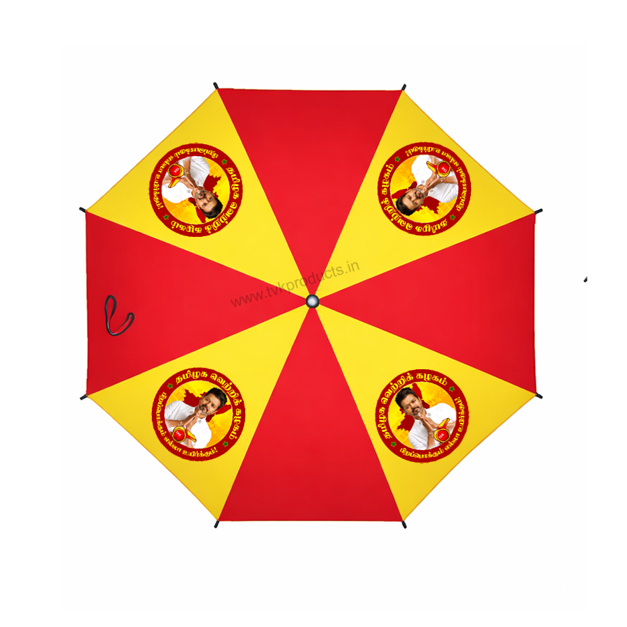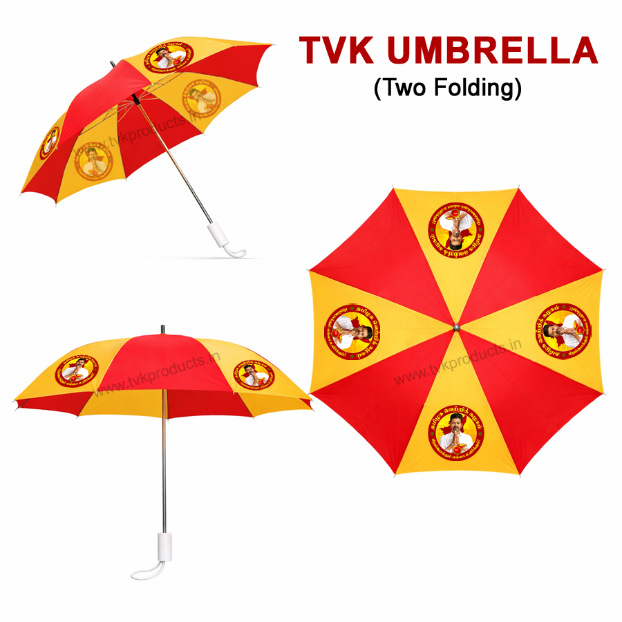 Compact and stylish TVK two-fold umbrella with a bold red & yellow design. Made with a strong frame and waterproof fabric for reliable protection in all weather. Easy to carry with a comfortable white handle—perfect for daily use.